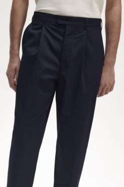 Kärbitud puuvillased toimsed püksid, mis on kujundatud õhukese istme ja peente Fred Perry detailidega.