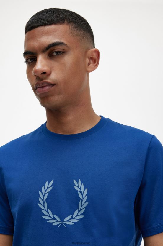 mehed loorberipärjaga graafiline T-särk Fred Perry varjutatud koobalt Riietus JHP2NZ545