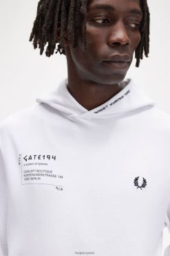 mehed trükitud kapuutsiga dressipluus Fred Perry valge Riietus JHP2NZ407